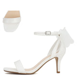 Perfect for adding a touch of feminine charm to your special occasion attire. Make your special moments unforgettable with the Delicious Dericia Bow Heel Sandal in White. Order yours today!